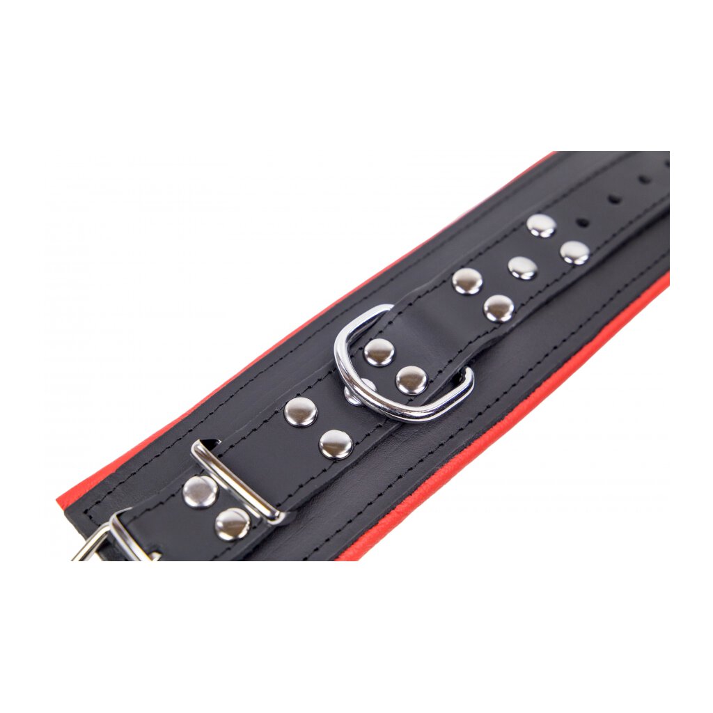 These handcuffs from The Red are designed for wrists. They have a padded interior to provide comfort. The length is 25 cm which adjusts to the wrist. The width is 6.5 cm. Removable snap hook. The handcuffs are made of genuine cowhide. Weight: 308 gr / Width: 8.0 cm / Depth: 5.0 cm / Height: 38.0 cm