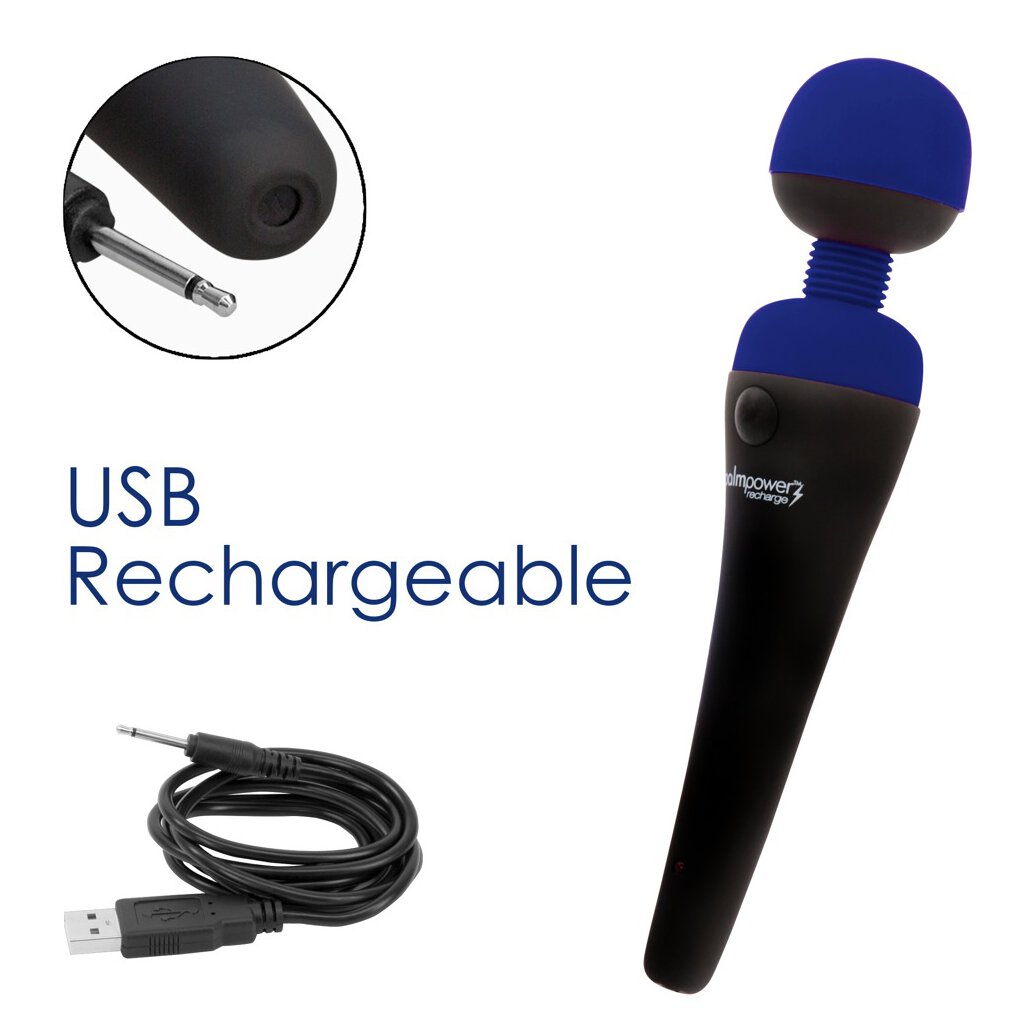 Wiederaufladbarer Massagestab von palmpower mit sehr flexiblem Massagekopf. Die zwei Vibrationsstufen lassen sich bequem per Knopfdruck direkt am Toy regulieren und sorgen für individuellen Massagegenuss von sanft bis intensiv. Sogar im/unter Wasser, denn er ist wasserdicht! Der Massagestab liegt perfekt und leicht in der Hand und lässt sich einfach führen.