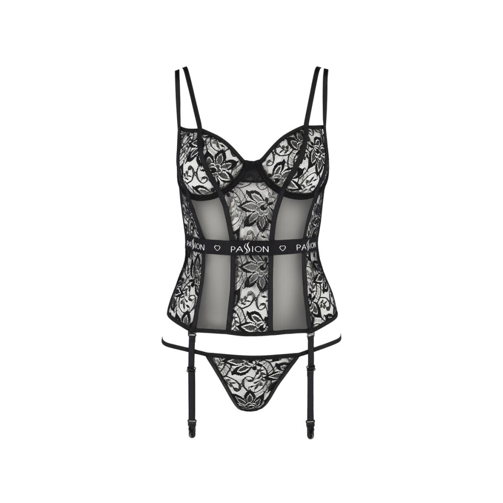 - Elegant suspender corsage made of a mix of soft tulle and delicate lace