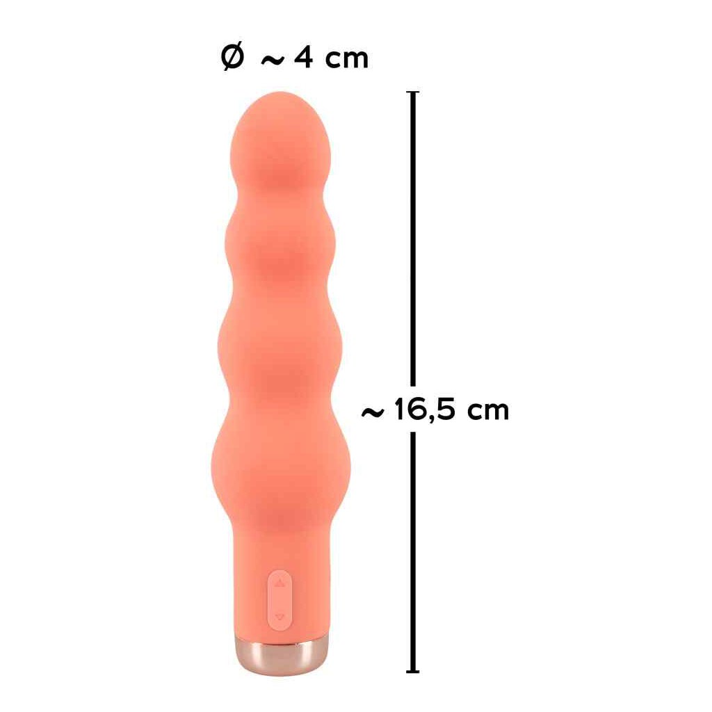 Pastel magnifique mini vibrateur à billes de peachy ! dans stimulant, conception de la boule étroite conique - s'adapte à toutes les poches ! 10 modes de vibration fournissent des variations de jeu vaginal et anal, ainsi que la stimulation des points de plaisir externes pour un plaisir varié et sont commodément contrôlables vers le haut et vers le bas en appuyant sur un bouton. Le matériau en silicone de haute qualité avec une texture douce au toucher procure une sensation de peau très agréable pendant le jeu et les soins. Rechargeable - câble de charge USB inclus.