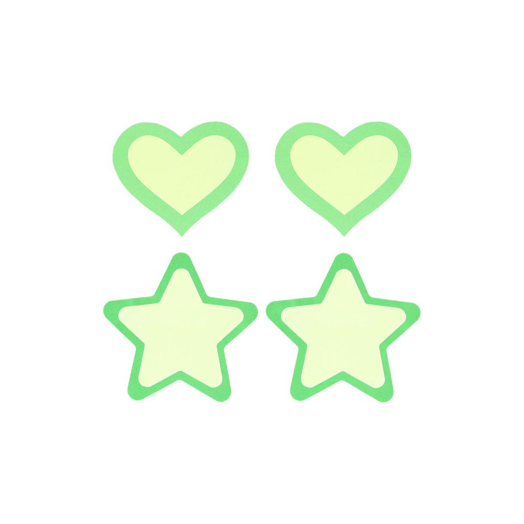 Für jeden Anlass hat Peekaboos Pasties das perfekte Pastic für Sie. Die hochwertigen, detailreichen Stücke der Peekaboos Pasties Kollektion bieten eine große Auswahl an Stilen. Mit Designelementen, die von schlichten 'X's und Herzen in klassischen Farben bis hin zu verspielten Quasten, von mit Juwelen besetzten verstellbaren Ringen bis hin zu offenen Kristalldesigns reichen, bietet Peekaboos Pasties eine Auswahl an feinstem Pasty-Schmuck. Egal, ob Sie etwas Dezentes zum Tragen unter einem durchsichtigen Oberteil oder etwas Ausgefallenes für ein eigenständiges Outfit suchen, Peekaboos bietet mit Sicherheit die perfekte Option für die temperamentvolle Frau von heute. Nippel Pasties in Stern- und Herzform / Leuchten im Dunkeln