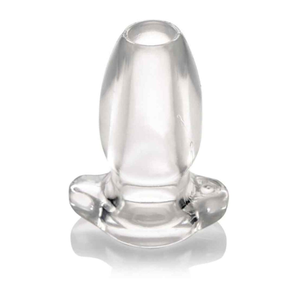 The perfect size for beginners to anal play or for those who prefer smaller penetration. With Peephole, you can discover a whole new part of your partner while peering into the depths of his butt! This anal plug is transparent and hollow for maximum visibility. The opening is also great for fluid play, whether youre doing an enema or getting creative in other ways. The contoured base makes this plug comfortable to wear for extended periods of time. This material is compatible with silicone and water-based lubricants.