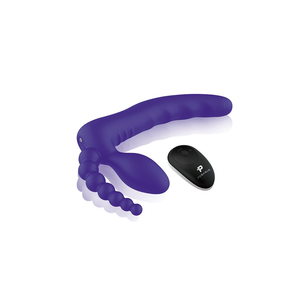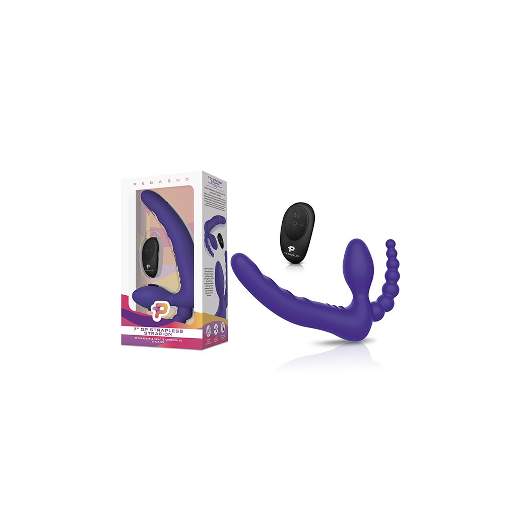 Steigern Sie Ihr Penetrationsvergnügen mit dem 17,8 cm langen Remote Control Strapless D.P. Silicone Strap On auf ein neues, intensives Niveau. Der Strapless D.P. Strap On hat zwei Enden, um sowohl die Trägerin als auch die Empfängerin zu stimulieren. Dieses einzigartige Toy bietet der Trägerin die doppelte Stimulation mit vaginaler und analer Penetration durch einen einführbaren Schaft, der für die Stimulation des G-Punkts verwendet werden kann, und einen Strang mit Perlen für das Hintertürchen. Steuern Sie die kraftvollen Vibrationen aus der Ferne mit der mitgelieferten kabellosen Steuerung. Der Dildo besteht aus seidenweichem Silikon und ist mit seiner großzügigen Länge von 17,8 cm perfekt für das Spiel zu zweit. Genießen Sie diesen leistungsstarken vibrierenden Dildo in der Dusche oder Badewanne mit seiner komplett wasserdichten Konstruktion.