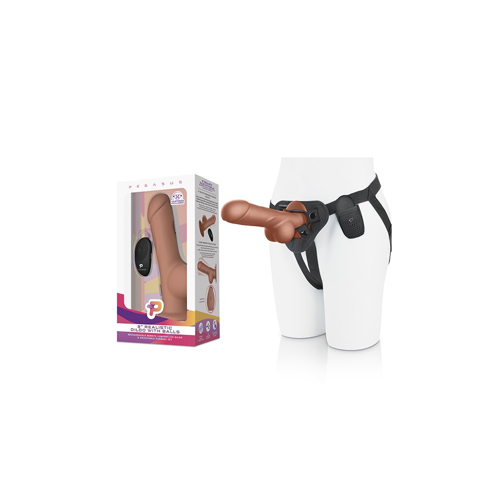 Bringen Sie visuelle Stimulation in Ihr Pärchenspiel mit dem ferngesteuerten, realistischen Silikon-Dildo mit Kugeln (20,3 cm). Dieser umfangreiche vibrierende Dildo verfügt über eine befriedigende Länge, die perfekt für eine tiefe, füllende Penetration ist. Dieser vibrierende Dildo hat nicht nur einen lebensechten Farbton, sondern auch eine realistische Spitze und Hoden, die bei jedem Stoß gegen die Öffnung des Benutzers stoßen und so für eine externe Stimulation sorgen. Dieser Dildo ist mit einem ultraglatten Silikon überzogen, das sich real anfühlt. Seine kraftvollen Vibrationen können mit der kabellosen Fernbedienung gesteuert werden, die aus einer Entfernung von bis zu 9 m funktioniert. Die Basis dieses realistisch vibrierenden Dildos ist mit einem ovalen Saugnapf ausgestattet, der dafür sorgt, dass der Dildo fest an seinem Platz bleibt. Das Set enthält außerdem einen vollständig verstellbaren Harness, der für eine Vielzahl von Größen geeignet ist und sich bis zu einer Taille von 165 cm erweitern lässt. Länge: 20,3 cm