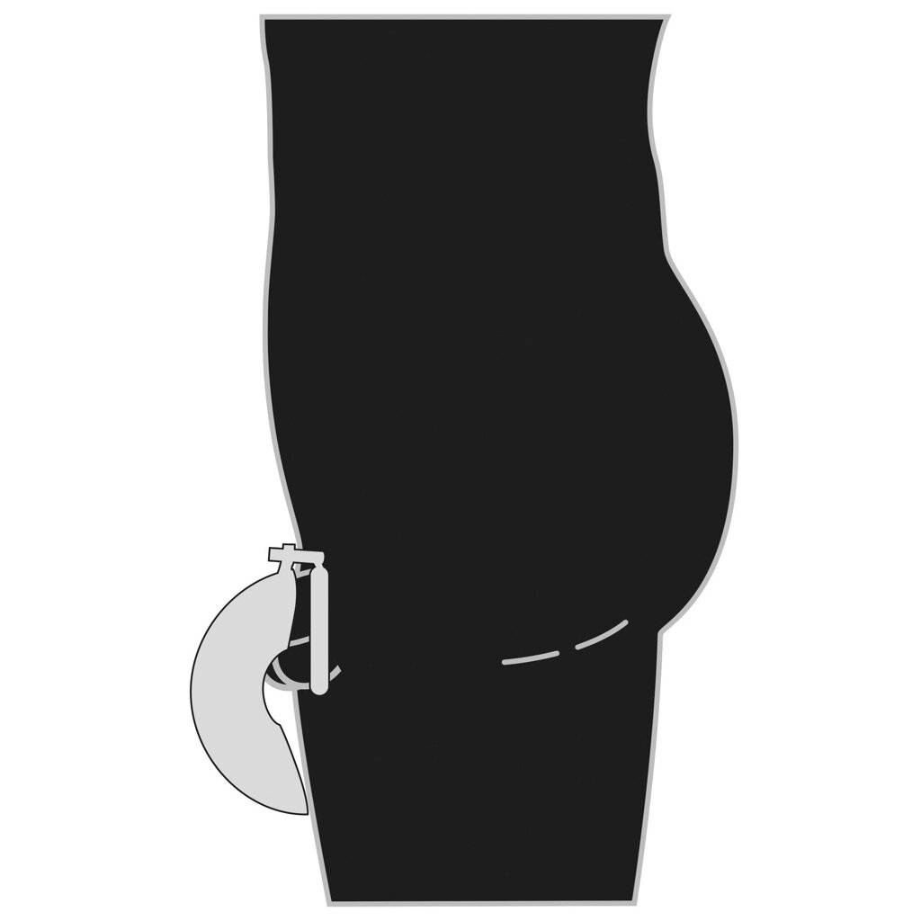 La cage à pénis est facile à mettre et à enlever : Le pénis non dressé entre dans la cage (moyennement) incurvée, l'anneau en acier est placé autour des testicules. Bien entendu, la cage peut être verrouillée à l'aide de la serrure fournie (3 clés incluses).