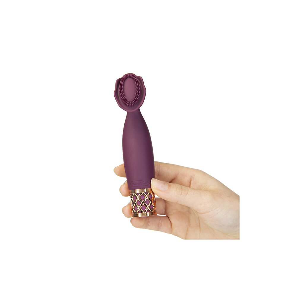 Können Sie ein Geheimnis bewahren? Mit dem neuen Passion von Pillow Talk Secret können Sie es wahrscheinlich nicht! Der zierliche Klitorisvibrator von Pillow Talk Secrets lädt Sie ein, in die Welt der Passion einzutauchen! Die ultraweichen Borsten auf dem blumenförmigen Silikonkopf geben Ihnen ein stimulierendes und befriedigendes Gefühl. Jeder kleine Noppen leitet die kraftvollen Vibrationen des PowerBullet-Motors direkt an Ihre empfindlichste Stelle und sorgt für ein prickelndes, neckisches, aber vor allem erregendes Gefühl. Die Mitte des flexiblen Kopfes ist weich und geschmeidig, und der blumenförmige äußere Rand lässt Sie mit funkelnden Kurven spielen. Die roségoldene, gitterförmige Basis sorgt für einen eleganten Griff, aber die weiche, hochwertige Silikonoberfläche sorgt für ein angenehmes, seidig-weiches Gefühl. Das kompakte Design des Passion bietet Ihnen die nötige Präzision, während die Vibrationen auf den Kopf und nicht auf den Griff gerichtet sind, damit Ihre Finger nicht vor Ihnen ermüden. Der Passion verfügt über stufenlose Geschwindigkeiten, die alle über einen einzigen Knopf an der Basis gesteuert werden. Halten Sie den Knopf einfach gedrückt, um zu spüren, wie der Stab zum Leben erwacht. Die Vibrationen werden immer schneller und intensiver, je länger Sie den Knopf gedrückt halten. Lassen Sie den Knopf auf der gewünschten Stufe los und drücken Sie erneut, um ihn auf die niedrigste Stufe zurückzusetzen. Aussteigen war noch nie so einfach! Die LED leuchtet genau wie Sie, wenn er eingeschaltet ist, und blinkt, wenn die Geschwindigkeit zunimmt. Finden Sie die perfekte Stufe des tiefen Grolls, die Sie erregt und befriedigt.