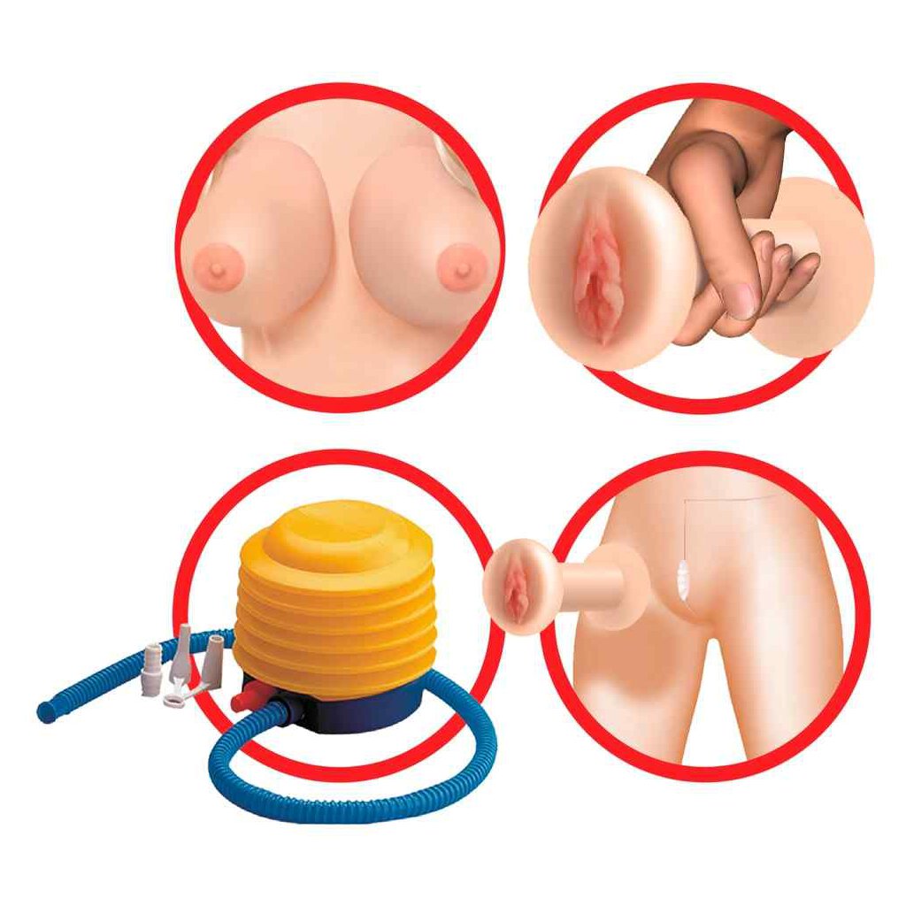 Eine Schönheit mit allen Extras! Diese Liebespuppe blickt den Betrachter sinnlich an mit ihrem verführerischen 3D-Gesicht und den langen, blonden Haaren. Auch die Hände und Füße sind ausgeformt und laden zu Streicheleinheiten ein, während die kecken Brüste mit festen Nippeln bestechen. Die beiden Lustkanäle befinden sich in einem Masturbator, der herausnehmbar ist und die Reinigung erleichtert. Dieser ist innen strukturiert.