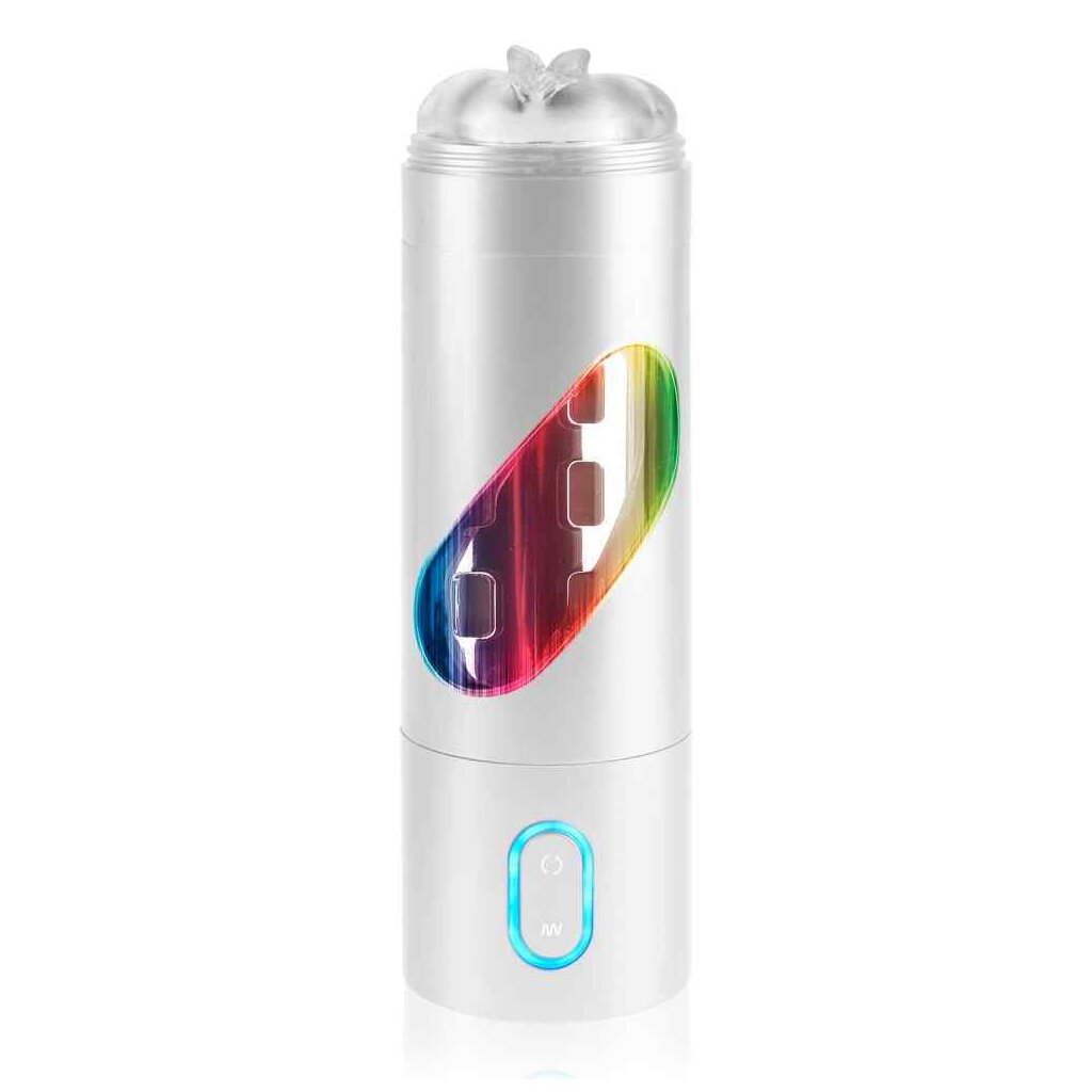 This masturbator massages the penis with 9 ecstatic rotation modes and a realistic vagina opening. The highlight is that it can change the direction of the spinning sleeve at the push of a button. This way it can produce mind-blowing massages, while the different layers of stimulating textures wrap around the penis and stimulate it to explosive orgasms. Each mode has its own light pattern in different colours. The sleeve can be removed for an easy cleaning. Includes a USB cable.