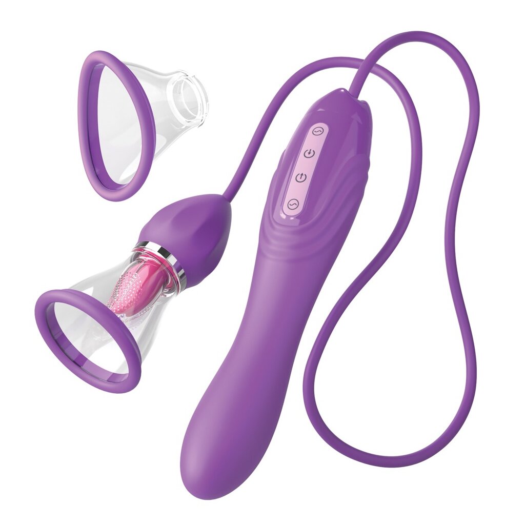 Her Ultimate Pleasure Max von Fantasy kombiniert einen intimen Saugnapf mit einer vibrierenden Leckzunge. Und der lange, schlanke, seidige Griff kann auch als Vibrator fungieren. Für äußere Stimulationen wie den besten Oralsex und tiefes Verwöhnen. Der extralange Pumpschlauch bietet viel Spielraum für Spaß allein oder zu zweit!