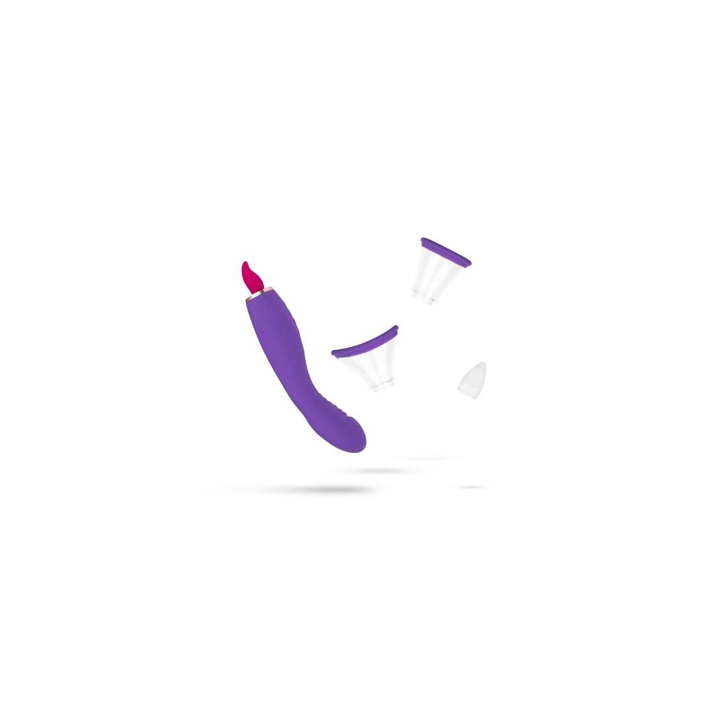 After using this Pleasure Pump, you will never want to use anything else! While the pump increases the blood flow to your erogenous zones, you are not only assured of a wonderful sucking stimulation, your swollen and shiny vulva is an exciting sight for you in the mirror or for your partner. The tongue spoils your clitoris in exactly the perfect way through the 7 stimulation positions. The G-spot vibrator at the other end has 10 vibration modes and is ribbed for extra pleasure. You can operate all functions separately from one another. The Pleasure Pump has 2 attachments with a 6 and 8 cm diameter. These are easy to change. Use a little bit of lubricant on the skin for an extra strong vacuum effect.