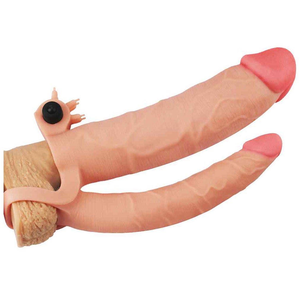 Pleasure X-Tender Vibrating Double Penis Sleeve Flesh 1