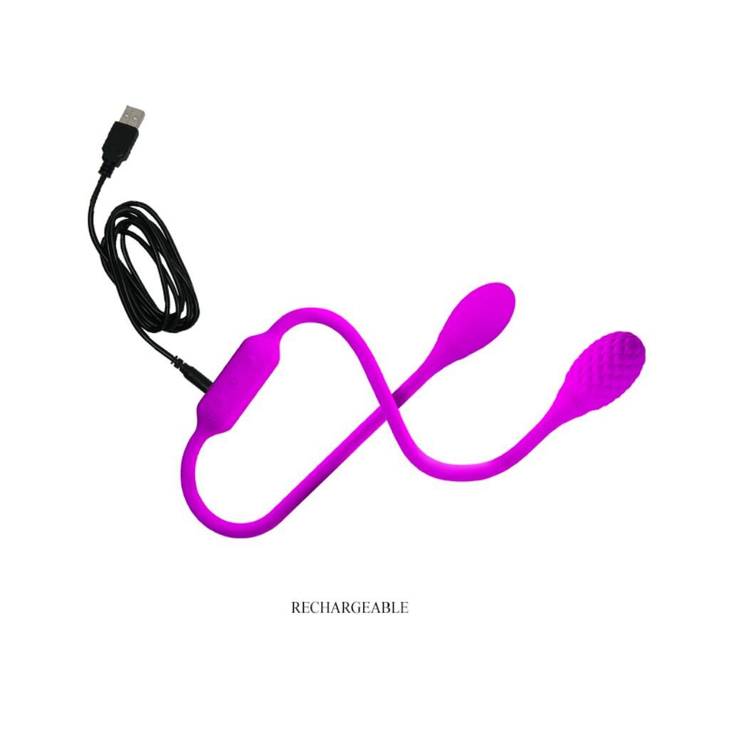 Doppelmotoren mit 12 Vibrationsfunktionen, wiederaufladbar mit angeschlossenem USB-Kabel.