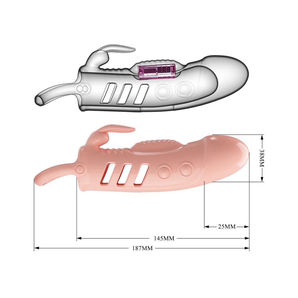 A vibrator on the shaft stimulates the size of your penis and is activated on contact.