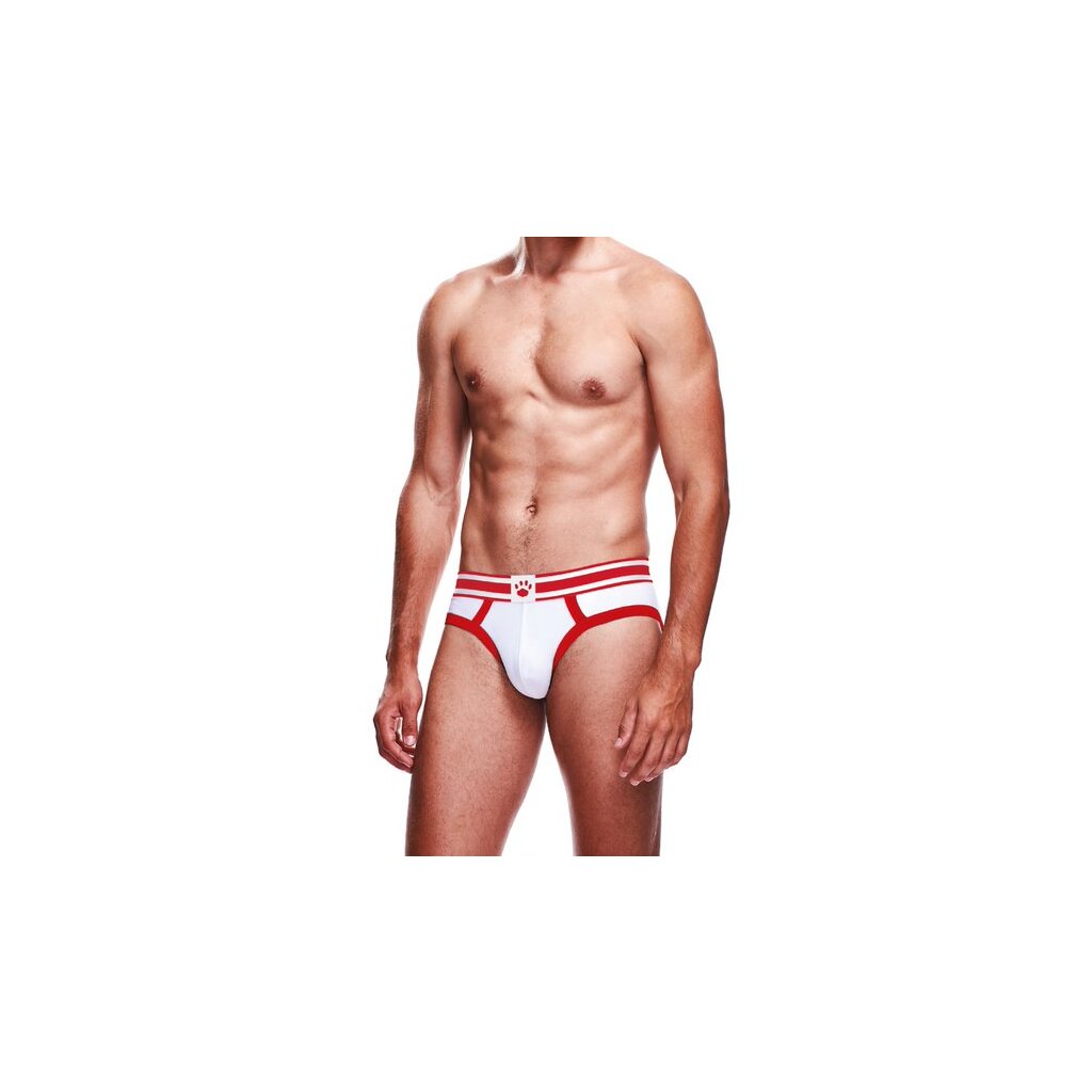 Der Prowler Slip in Weiß-Rot besticht durch sein auffälliges Design, das durch einen kontrastierenden roten Bund und rote Ziernähte akzentuiert wird. Der breite, elastische Bund sorgt nicht nur für eine perfekte Passform, sondern verleiht auch einen Hauch von Raffinesse.
