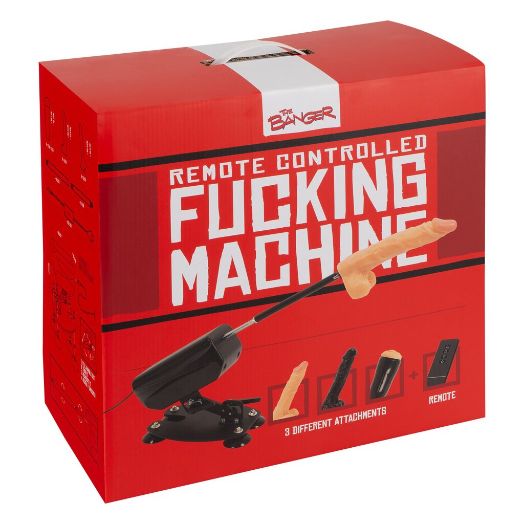 Strombetriebene RC Fucking Machine von The Banger im kompakten kleinen Format inklusive 2 Dildos und 1 Masturbator für abwechslungsreiche, endlose Sex-Vergnügen. Die leichte Power-Sexmaschine hält mit ihren Saugfüßen fest und sicher auf allen glatten Oberflächen und lässt sich individuell für den/die Nutzer:in ein- und im Winkel verstellen und somit freihändig genießen.