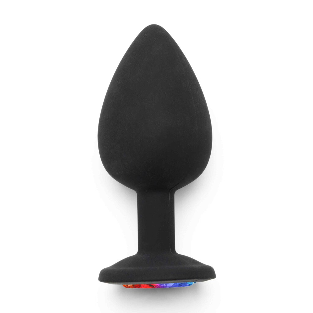 The Rainbow Booty Jewel is a quality butt plug with a multicolored faux-gemstone accent in the base, making your backdoor fun sparkle with delight! The sleek plug features a tapered silhouette and flared base, enhanced with a brilliant gemstone accent at the end. Made of premium silicone, the Diamond Booty Jewel is smooth to the touch and completely body-safe. A must-have from the Anal Play collection by TOYJOY, it's the perfect unisex plug to add a glamorous twist to your anal adventures.