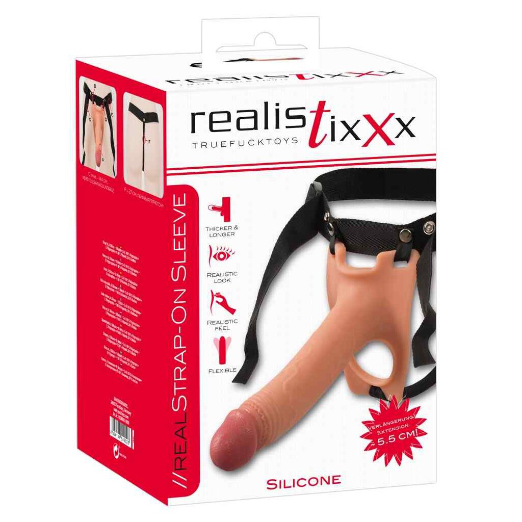 Das ideale Penis-Upgrade! Mit dieser Sleeve bekommt der Penis eine sagenhafte Verlängerung von 5,5 cm und eine beachtliche Verdickung von 1,4 cm. Dabei fühlt die Sleeve sich extrem realistisch an und sieht mit der pinken Eichel und der leichten Äderung auch noch besonders ansprechend aus. Das Hodenloch ermöglicht derweil einen besseren Halt der Sleeve und der Spielpartner wird dazu eingeladen, auch den Hoden ein wenig Aufmerksamkeit zu schenken. Der Hüftgurt ist in der Breite verstell- und abnehmbar. Ein Band zwischen den Pobacken gibt zusätzlichen Halt, ist besonders elastisch und ebenfalls abnehmbar. Perfekt für alle, die gerne etwas mehr haben möchten!