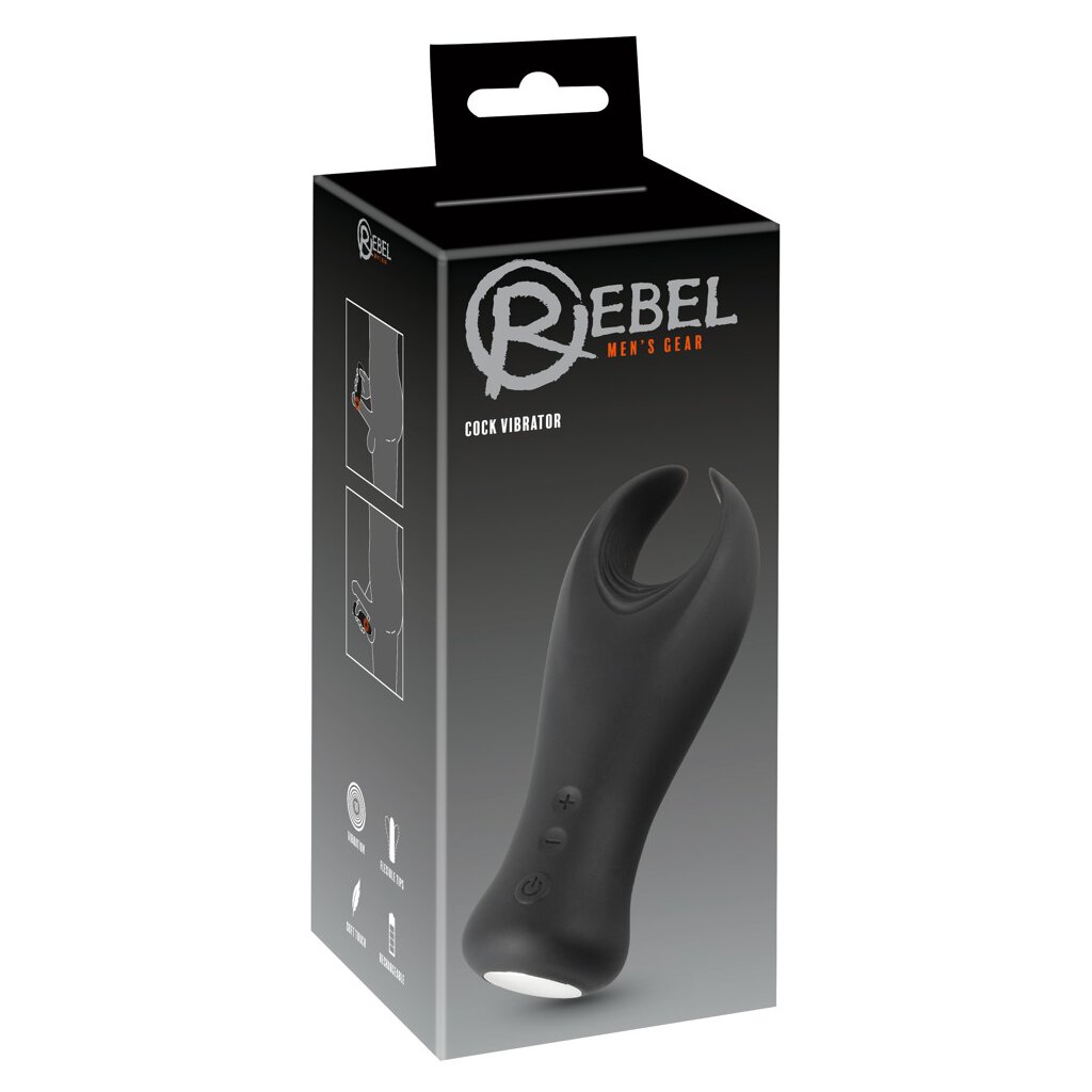 Cock Vibrator von Rebel mit flexiblen, flatternden Vibro-Flügeln, die seinen Penis erregend in die Zange nehmen und mit ihren ausgeprägten Reizrillen intensiv massieren und stimulieren.
