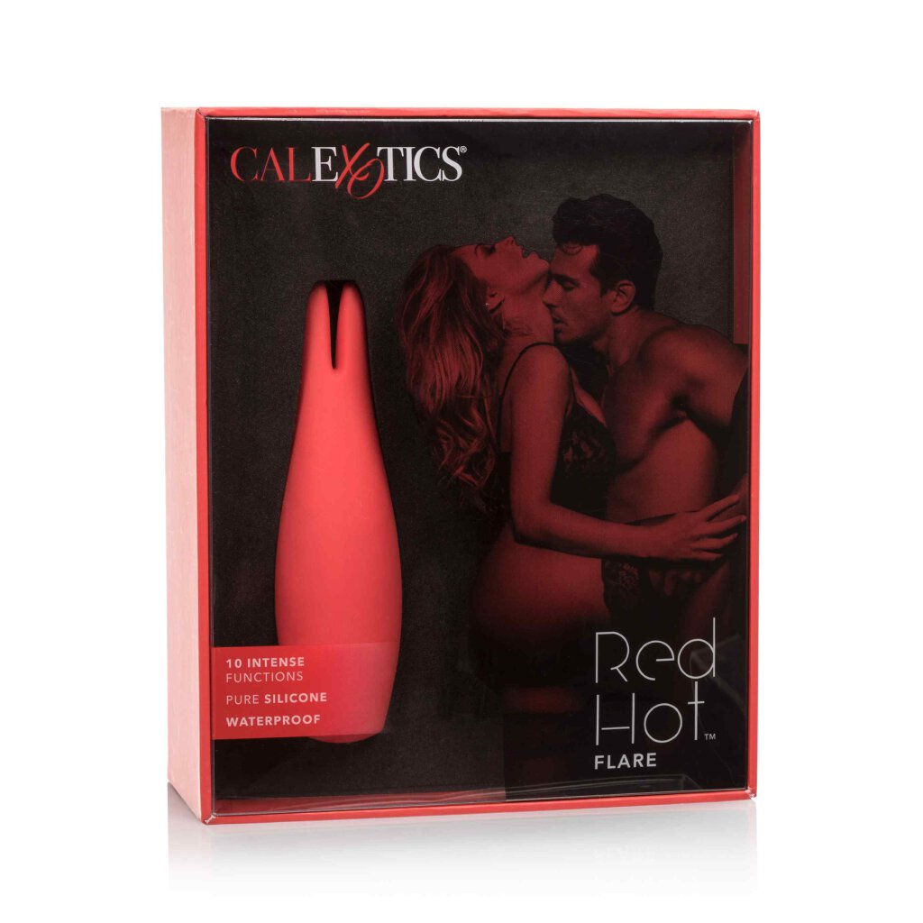CalExotics Red Hot Flare verpackt intensive Multifunktionsvibrationen in ein einzigartig sexy Paket. Spüren Sie, wie die Hitze steigt, wenn die doppelt flackernden Spitzen gegen Ihre Lieblingspunkte flattern und 10 intensive Vibrations-, Pulsations- und Eskalationsfunktionen Sie mit Vergnügen in Flammen setzen. Dieses sündhaft köstliche Spielzeug hat einen kompakten, seidigen Silikonkörper und einen einfach zu bedienenden Reiseverschluss, so dass Sie strahlendes Vergnügen umarmen können, wo immer Ihre Fantasien Sie hinführen. Teilen Sie dieses prickelnde Vergnügen mit Ihrem Partner unter der Dusche oder verwöhnen Sie sich selbst in der Badewanne mit den kraftvollen, wasserdichten Vibes. Verwöhnen Sie sich mit 3 Stunden flüsterleisem, vibrierendem Vergnügen, bevor Sie diesen herrlichen Vibrator wieder aufladen müssen. Zum Aufladen schließen Sie den Vibrator einfach an das mitgelieferte USB-Kabel an und warten Sie 2,5 Stunden, bis der Lithium-Ionen-Akku wieder vollständig aufgeladen ist. Egal, ob Sie ein schüchterner Anfänger oder ein exotischer Experte sind, Sie können sich darauf freuen, die Flammen des reinen Vergnügens zu entfachen, indem Sie dieses persönliche Massagegerät zu Ihrer geheimen Spielzeugkiste hinzufügen. Gesamtlänge: 11,5 cm / Durchmesser: 3,25 cm / Einführbare Länge: 10,5 cm / Vibrationsmodi: 10 / Wiederaufladbar / Material: Silikon