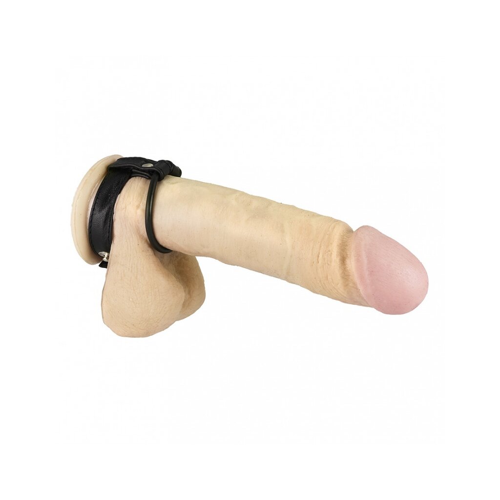 L’anneau en caoutchouc (Ø 4 cm) entoure la base du pénis avec une pression douce mais efficace, favorisant une érection plus forte et plus durable. La sangle en cuir, équipée de boutons-pression robustes, permet un ajustement rapide et sécurisé selon les préférences.