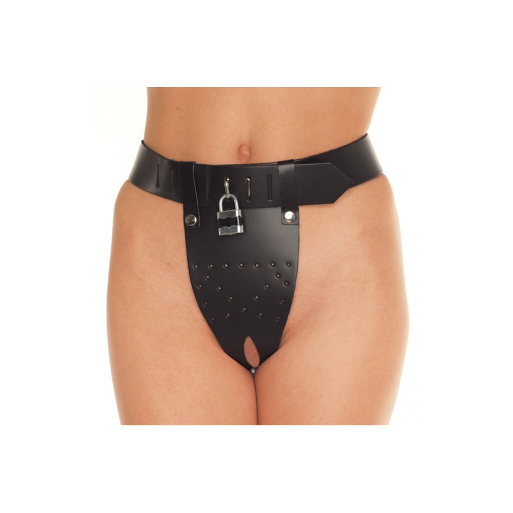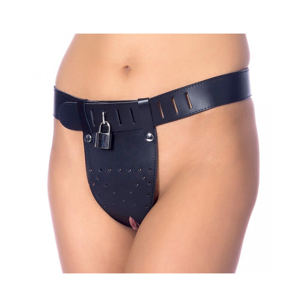 Un cadenas à l’avant verrouille l’ensemble, incarnant la maîtrise et l’interdiction. Ce modèle en taille S/M s’ajuste facilement entre 80 et 95 cm grâce à plusieurs positions de fermeture – pour un port sûr, serré et très sensuel.