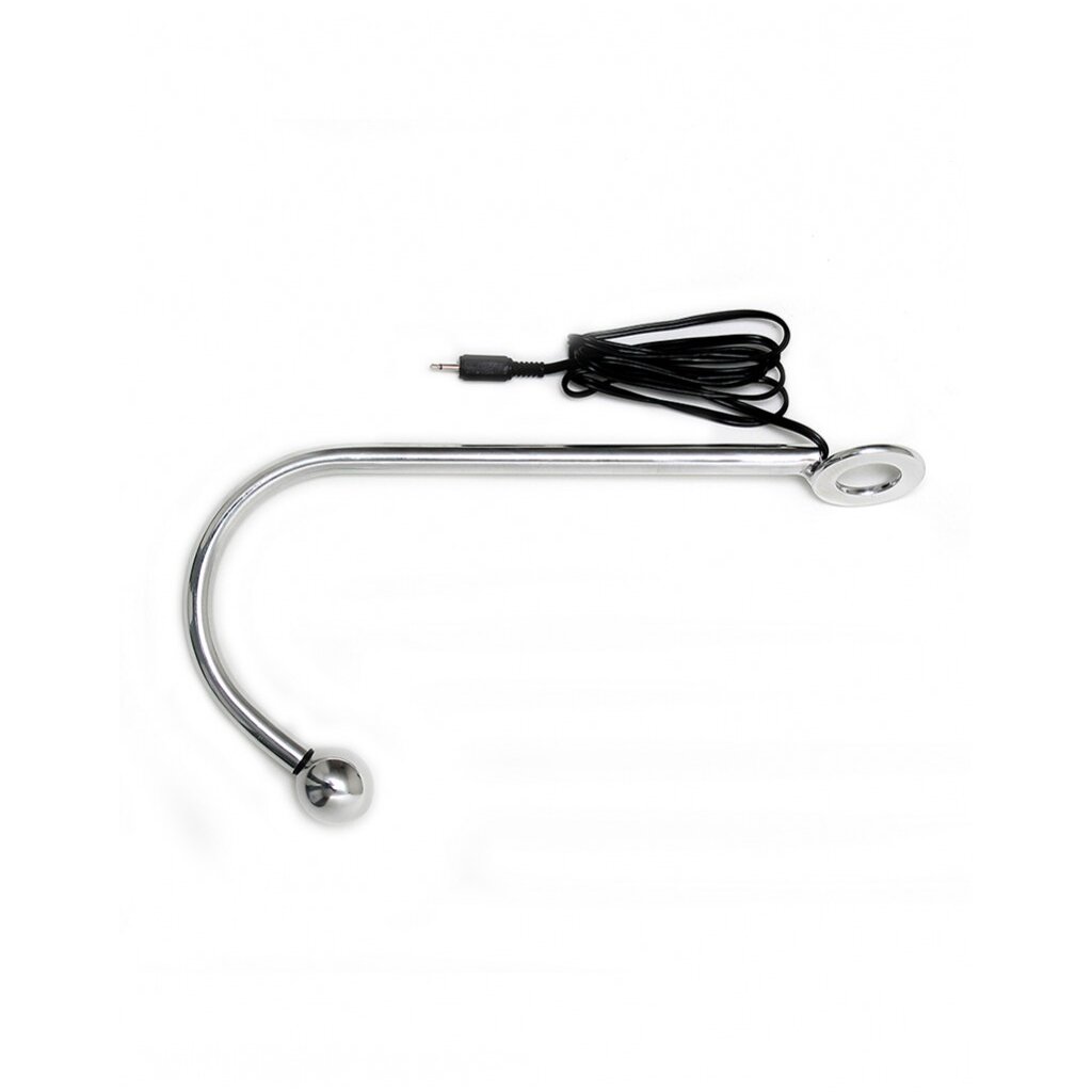 Rimba Electro Play. Dieser Bi-polar Electro Stimulation Haken kann auf unterschiedliche Weise (vaginal und anal) verwendet werden. Die beiden leitenden Teile gliedern sich von den schwarzen Ring unter die Kugel von ø 30 mm. Haken wie diese werden meistens mit Bondage Seile benutzt. Der Elektro Haken verfügt über einen 2,5-mm-Klinkenstecker der direkt an alle Rimba Power Box-Geräte angeschlossen werden kann. Durchmesser: 3 cm / Länge: 28 cm / Material: Aluminium