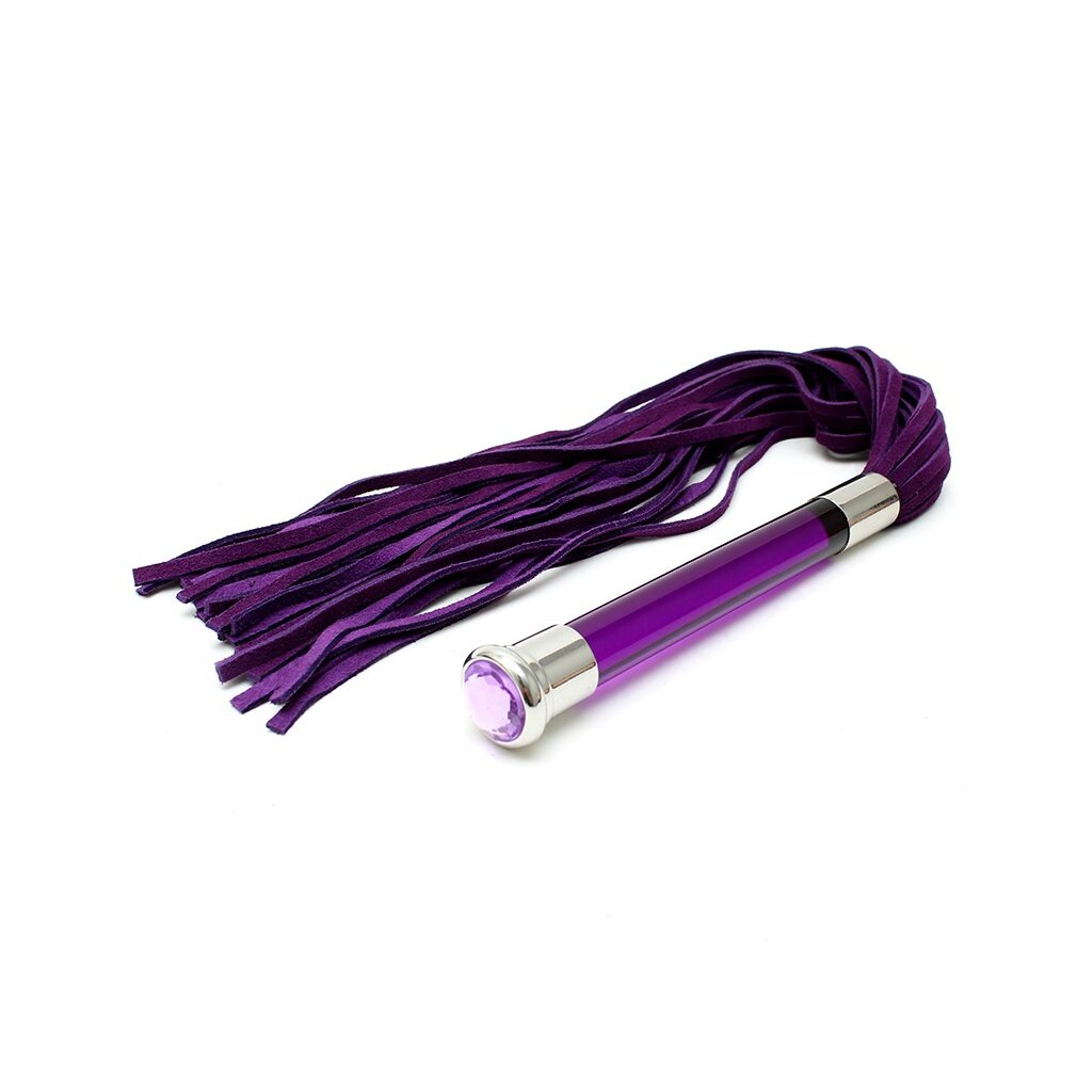 Le flogger Rimba en daim avec manche en verre et cristal est un accessoire raffiné pour des jeux de domination tout en élégance. Ses lanières en daim effleurent la peau d’une douceur envoûtante, mêlant tendresse et intensité.