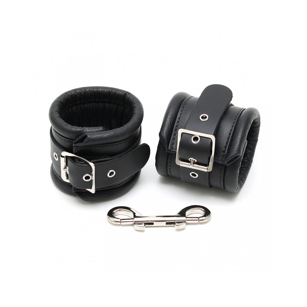 Their 7 cm width gives a secure, commanding hold, and the metal buckle adjusts over four positions for a perfect fit. The included double carabiner offers multiple ways to connect or bind, making these cuffs ideal for refined, sensual bondage play.