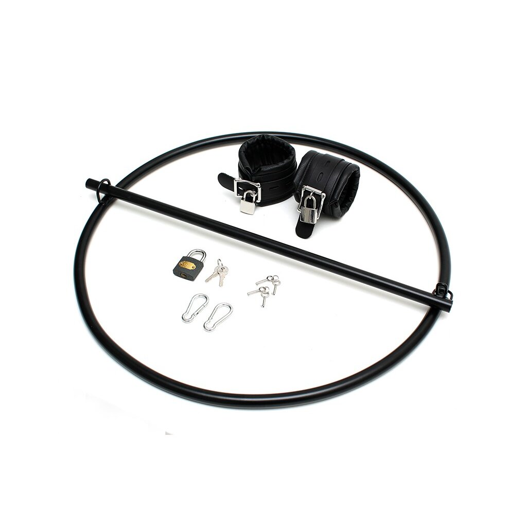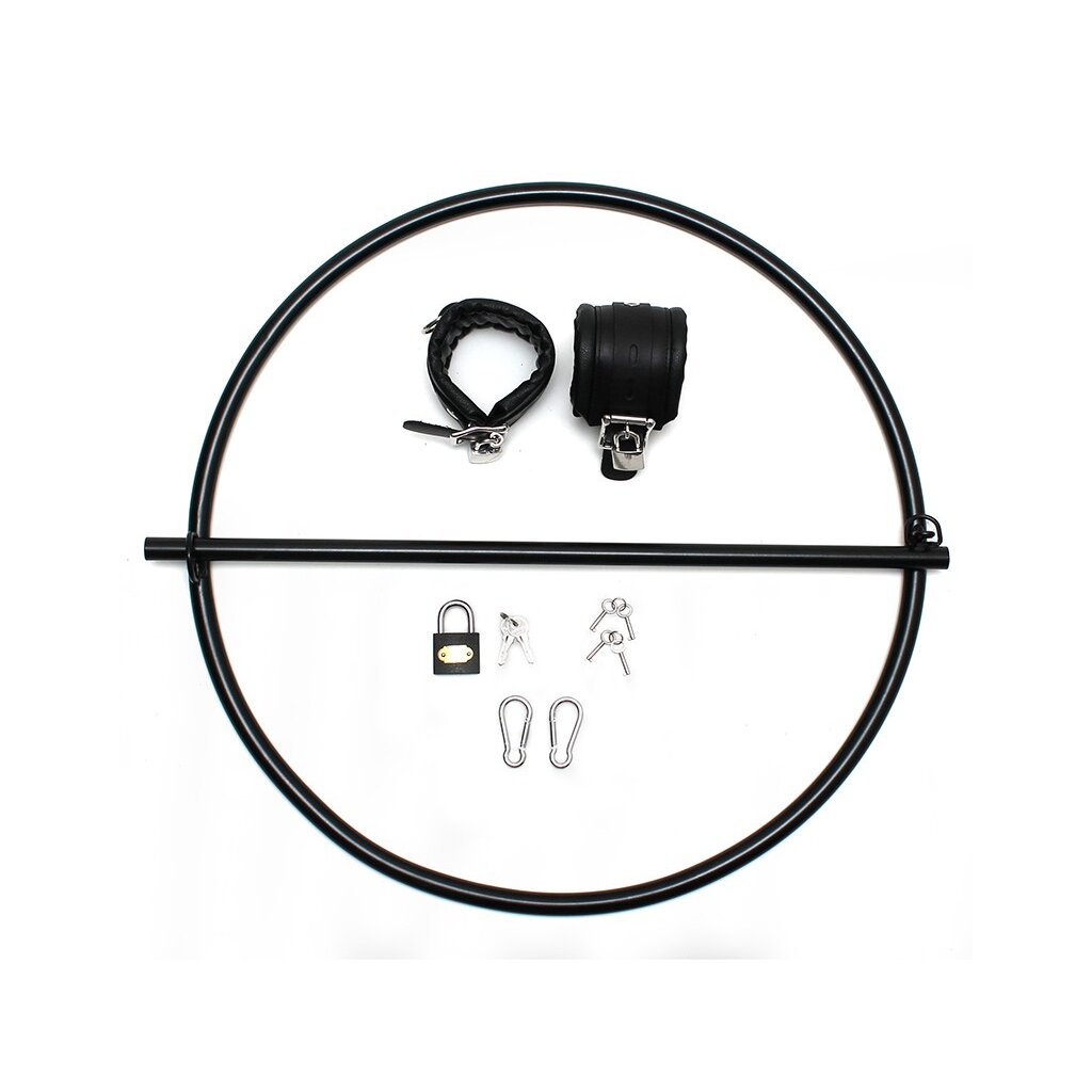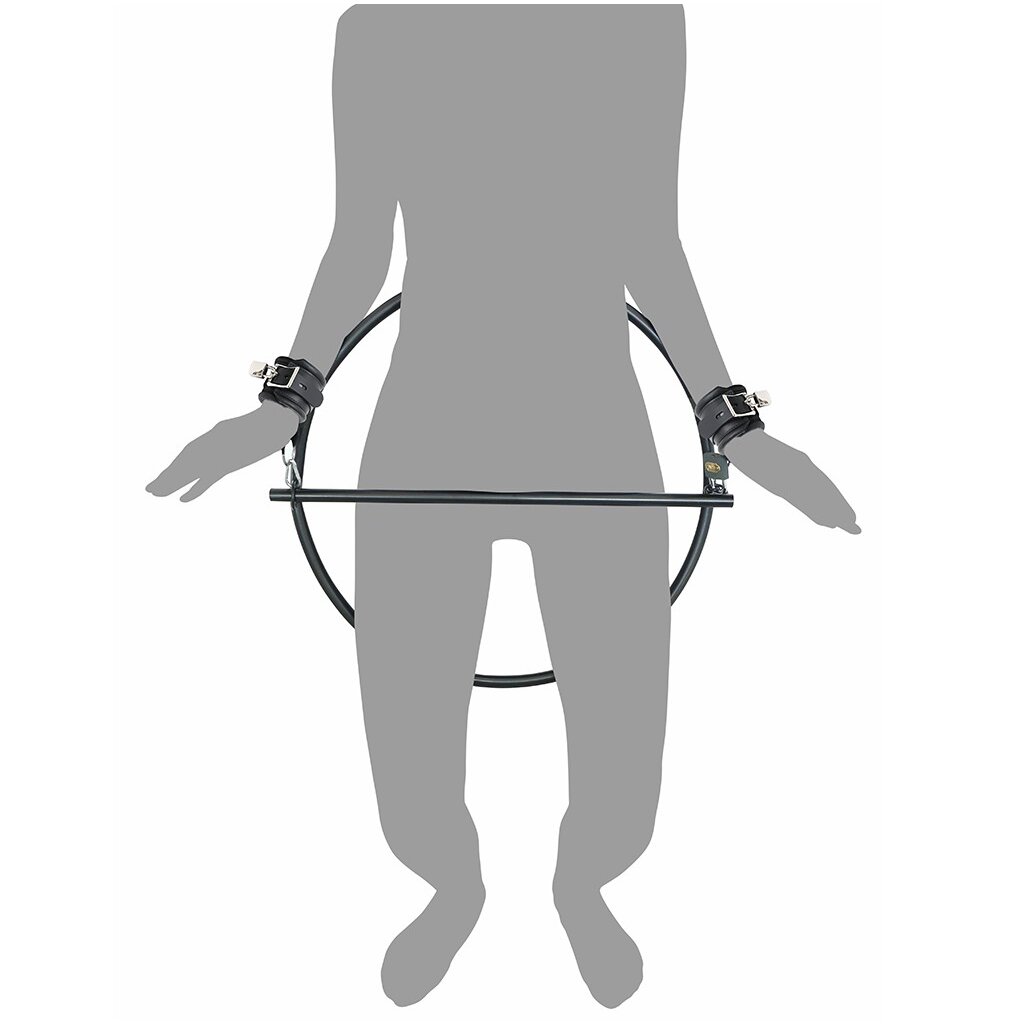 Dieser Fesselring ist perfekt, um eine unterwürfige Person an Ort und Stelle zu halten. Treten Sie in den Kreis und lassen Sie sich von Ihrem Partner einschließen. Das starke Vorhängeschloss und die robusten Lederhandschellen machen ein Entkommen unmöglich! Der Fesselring ist eine großartige Einführung für Anfänger, die mit BDSM experimentieren möchten, sowie für erfahrene BDSM-Liebhaber. Diese Version des Fesselrings verfügt über luxuriöse, robust Dieses BDSM-Spielzeug ist verstellbar, hat einen Ersatzschlüssel und ist einfach zu bedienen.