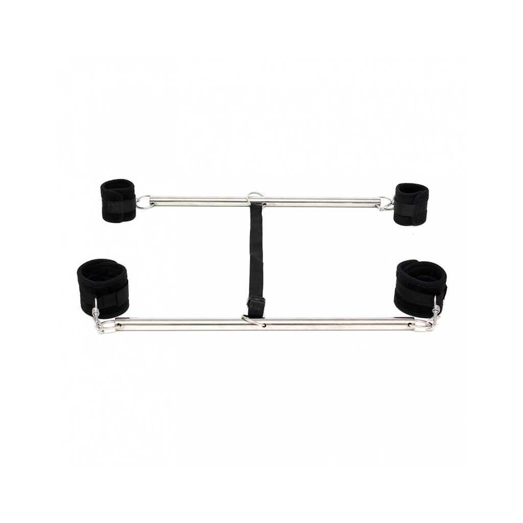 Discover new ways to play with the soft-bondage spreader bar – a sensual restraint tool that combines elegance, comfort, and control. Two polished chrome rods are joined by adjustable straps, keeping your partner in a teasingly open position for intimate, submissive play.