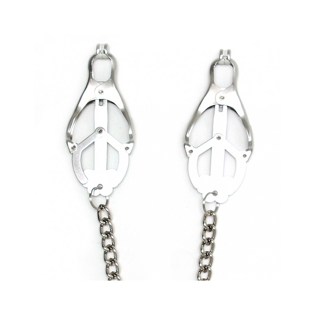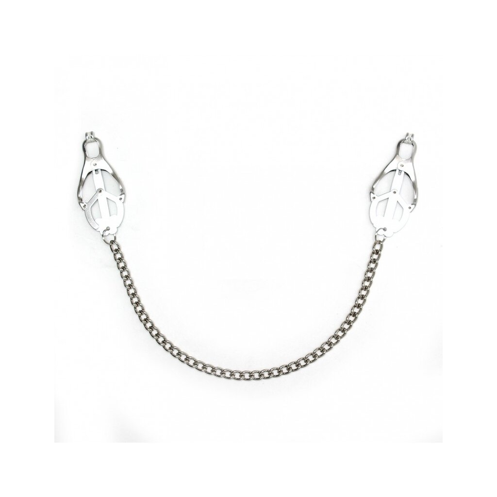 Die Klemmen sind mit weichen Gummikappen versehen, die Deine empfindliche Haut schützen und zugleich für sicheren Halt sorgen. Die silberne Metallkette verbindet beide Klemmen und reagiert sensibel auf jede Bewegung, wodurch ein dynamisches, interaktives Lustspiel entsteht. Ideal für Bondage, Dominanz oder als intensiver Höhepunkt beim Vorspiel – ein stilvolles Accessoire für alle, die raffinierte Kontrolle und erotische Spannung lieben.