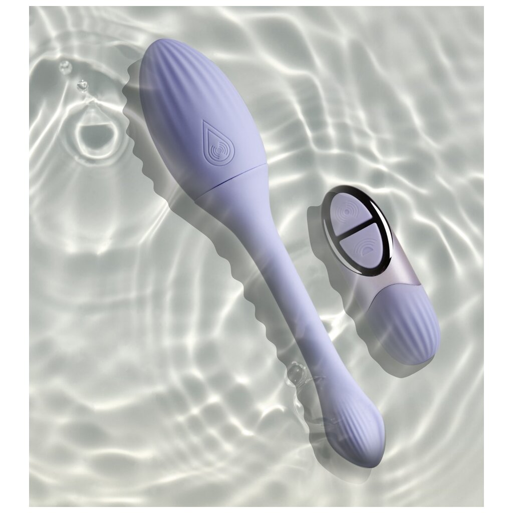 Sanft strukturiertes Vibro-Ei NIYA 1 von Rocks off mit 2 Motoren für innere und äußere Stimulation. Während das Vibro-Ei mit seinen 91 g die Vagina intensiv verwöhnt und den Beckenboden effektiv trainiert, vibriert und stimuliert der flexible Arm gezielt die Klitoris oder den Anus/Perineum. Mit 10 flüsterleisen Vibrationsmodi sorgt es für abwechslungsreiche Lustgefühle. Mit der praktischen Fernbedienung lassen sich die Modi bequem per Knopfdruck steuern – auch vom Partner. Sogar in der Badewanne und unter der Dusche ist es einsetzbar, denn es ist wasserdicht!