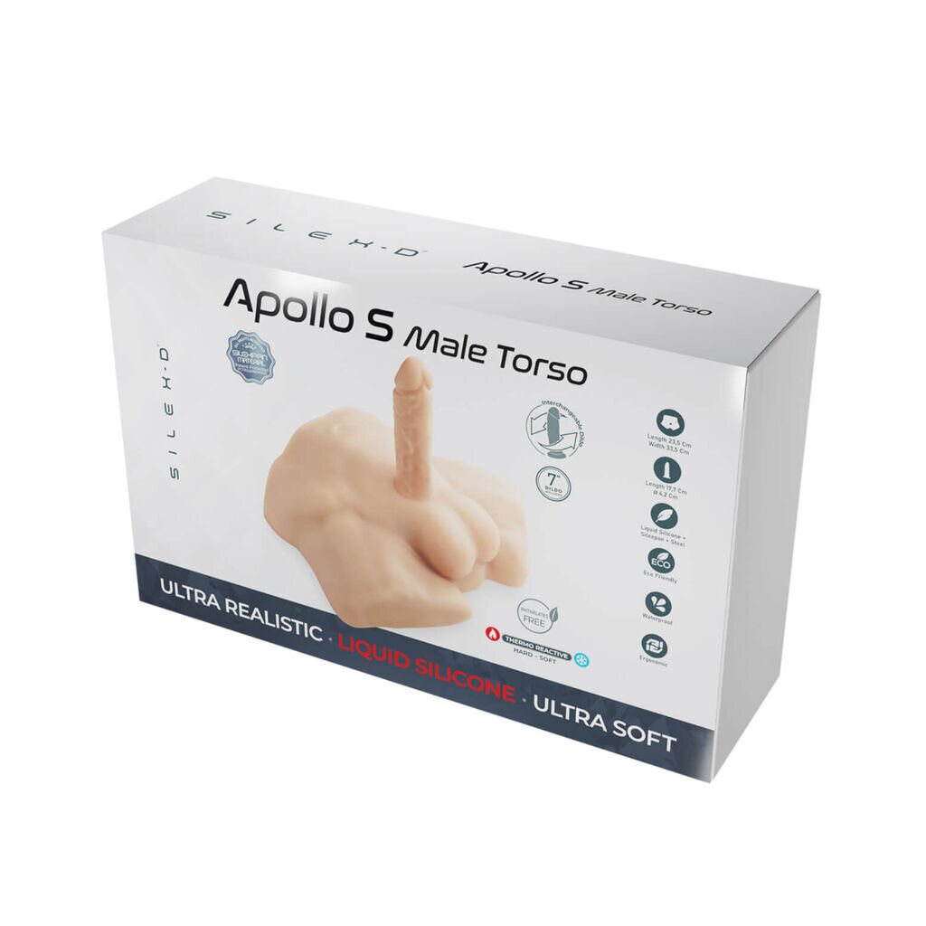 Discover a realistic male torso with the Apollo S, which offers you an incomparable pleasure experience. Made from high-quality materials such as liquid silicone, Silexpan and steel, the Apollo S impresses with its flexibility and durability for long-lasting pleasure. Its dimensions of 23.5 cm long, 9 cm high and 33.5 cm wide as well as the interchangeable dildo with a length of 17.7 cm and a diameter of 4.2 cm ensure intense stimulation and unforgettable experiences. The Apollo S is not only designed to be environmentally friendly, it is also waterproof so that you can enjoy your pleasure without any worries. Its authentic design with natural texture perfectly mimics human skin to give you a lifelike experience. Thanks to its ergonomic design, the Apollo S adapts effortlessly to different postures and preferences, so you can experience comfort and adaptability for unforgettable moments of sensuality. Immerse yourself in the world of the Apollo S and discover your personal path to intense and fulfilling pleasure.