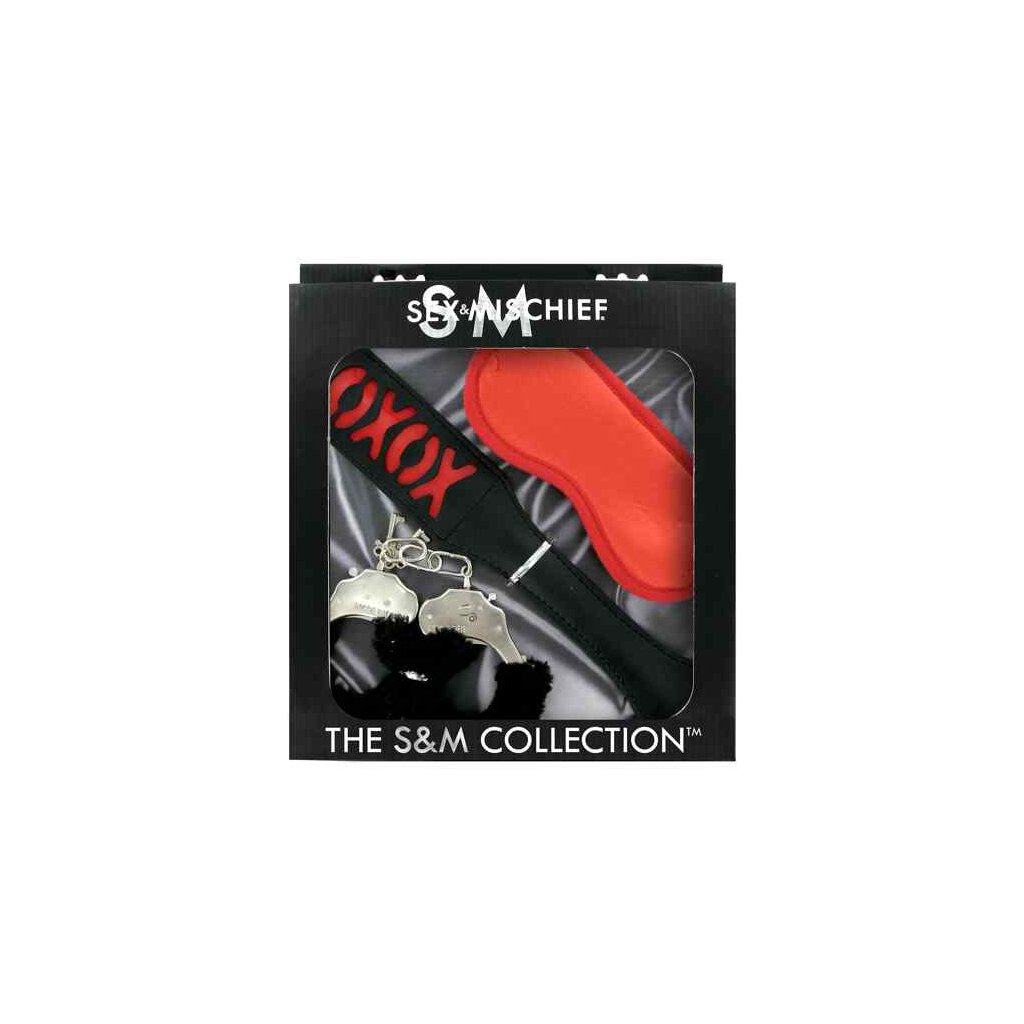 Comprend : - Des menottes noires en fourrure - Une pagaie XOXO - Un bandeau rouge satiné - Un contrat de domination/soumission .