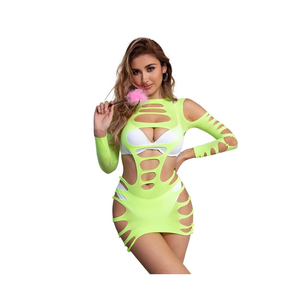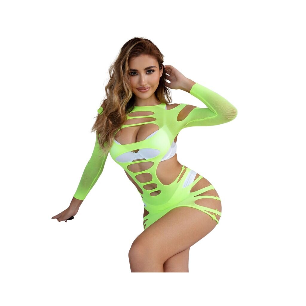 SUBBLIME Green Long Sleeve Elastic Fishnet Bodystocking One Size