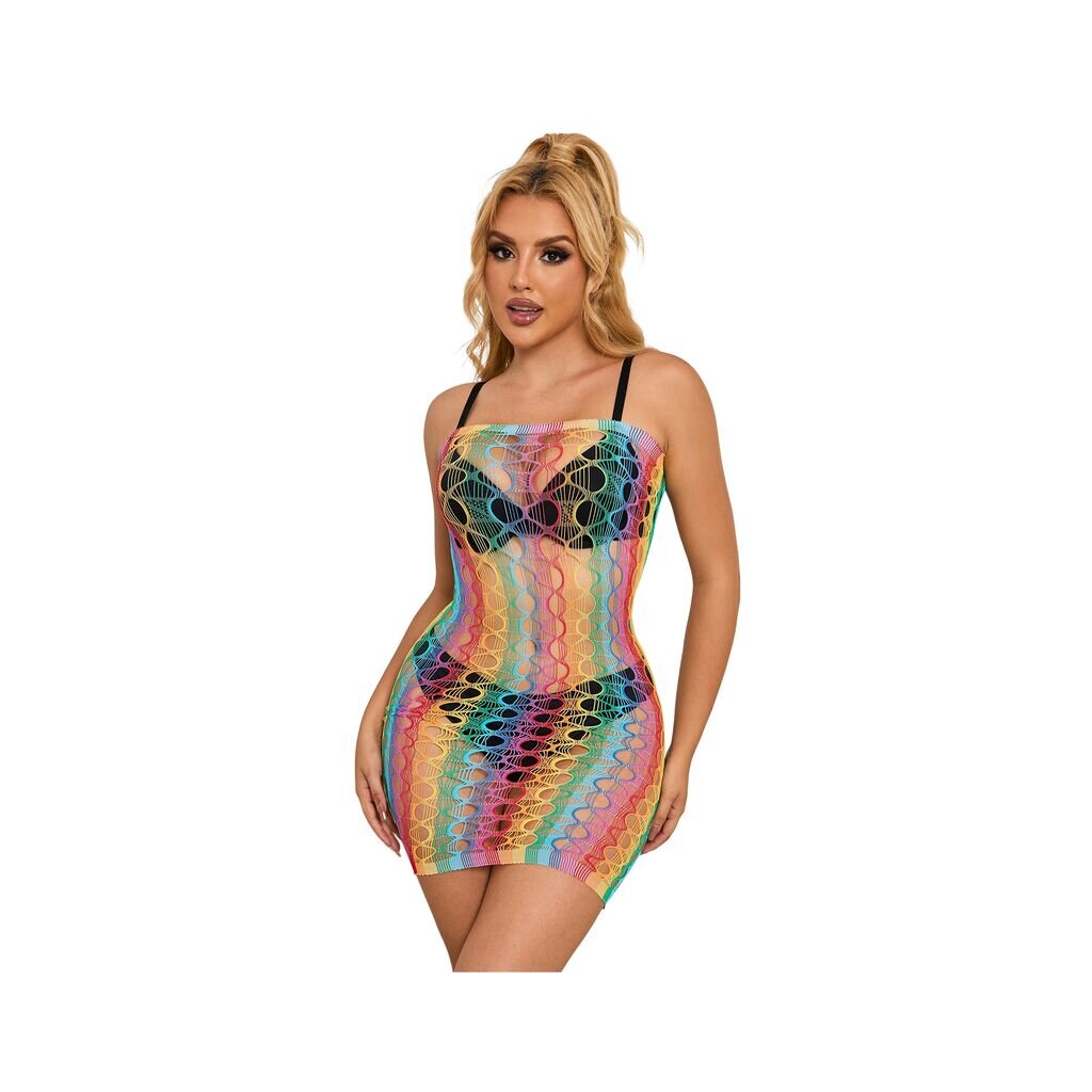 SUBBLIME Rainbow Bare Shoulder Fishnet Bodystocking One Size