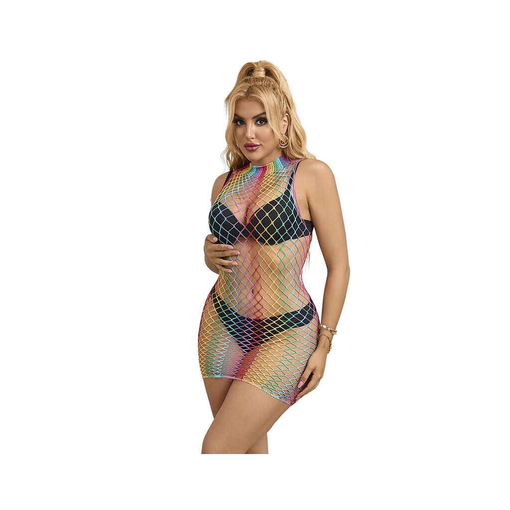 SUBBLIME Rainbow High Neck Sleeveless Fishnet Bodystocking One Size