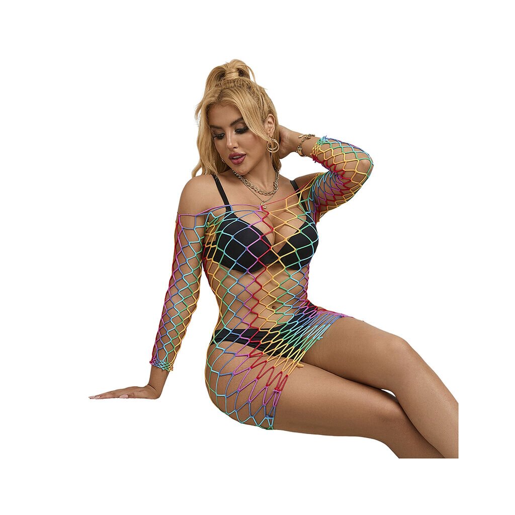 SUBBLIME Rainbow Long Sleeve Fishnet Bodystocking One Size