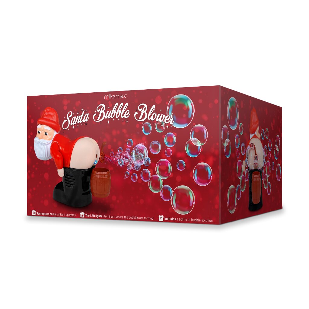 Erleben Sie Weihnachten einmal anders - verspielt, glitzernd und voller Freude mit dem Santa Bubble Blower, der Ihren Feiertagen das gewisse Etwas verleiht.