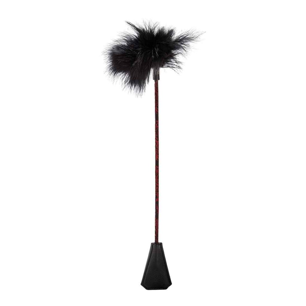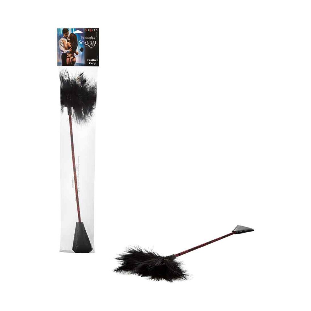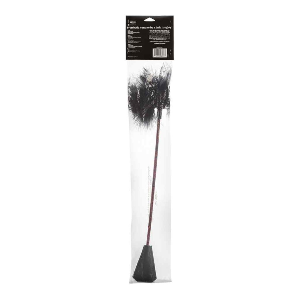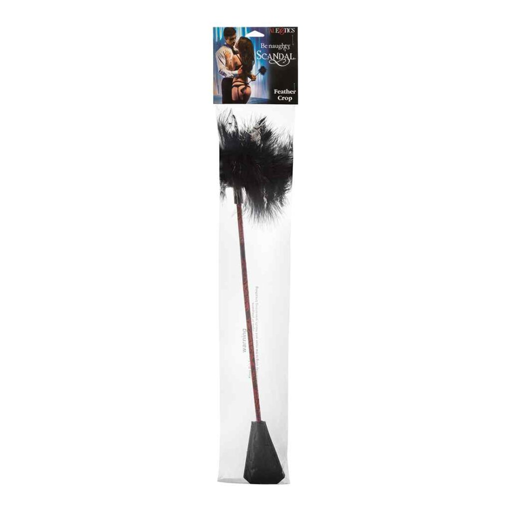 Vous vous sentez scandaleuse ou douce ce soir ? Avec le Scandal Feather Crop, vous n'aurez pas à choisir... et vous pourrez même taquiner votre partenaire toute la nuit en passant du coquin au gentil. Cette élégante cravate est cousue à la main, à double extrémité et chatouilleuse. La cravache robuste avec des accents design à l'une des extrémités peut délivrer une douce tape qui picote ou un coup doux et piquant qui laisse la peau du soumis chanter avec le souvenir du contact de la cravache. Explorez la frontière infime qui sépare le plaisir de la douleur avec cette cravache à deux extrémités ; pour un contact plus doux, retournez-la et sentez le contact ludique et chatouillant de la plume qui vous taquine le ventre ou la plante des pieds. Jouez avec le contraste addictif des sensations entre le toucher innocent de la plume et l'étreinte coquine et époustouflante de la cravache contre votre peau. Si le côté dominant est plus votre style, regardez votre amant se tortiller dans l'attente tandis que vous le taquinez lentement et laissez la plume lui faire frissonner l'échine.... puis surprenez-le avec le baiser irradiant et puissant de la cravache. Pimentez une soirée de jeu ordinaire ou complétez parfaitement une incursion dans le bondage et les contraintes. Elle est parfaitement conçue pour les débutants comme pour les confirmés. Frappez aussi fermement ou aussi doucement que vous le souhaitez. Testez les limites de la confiance et succombez au désir ce soir.