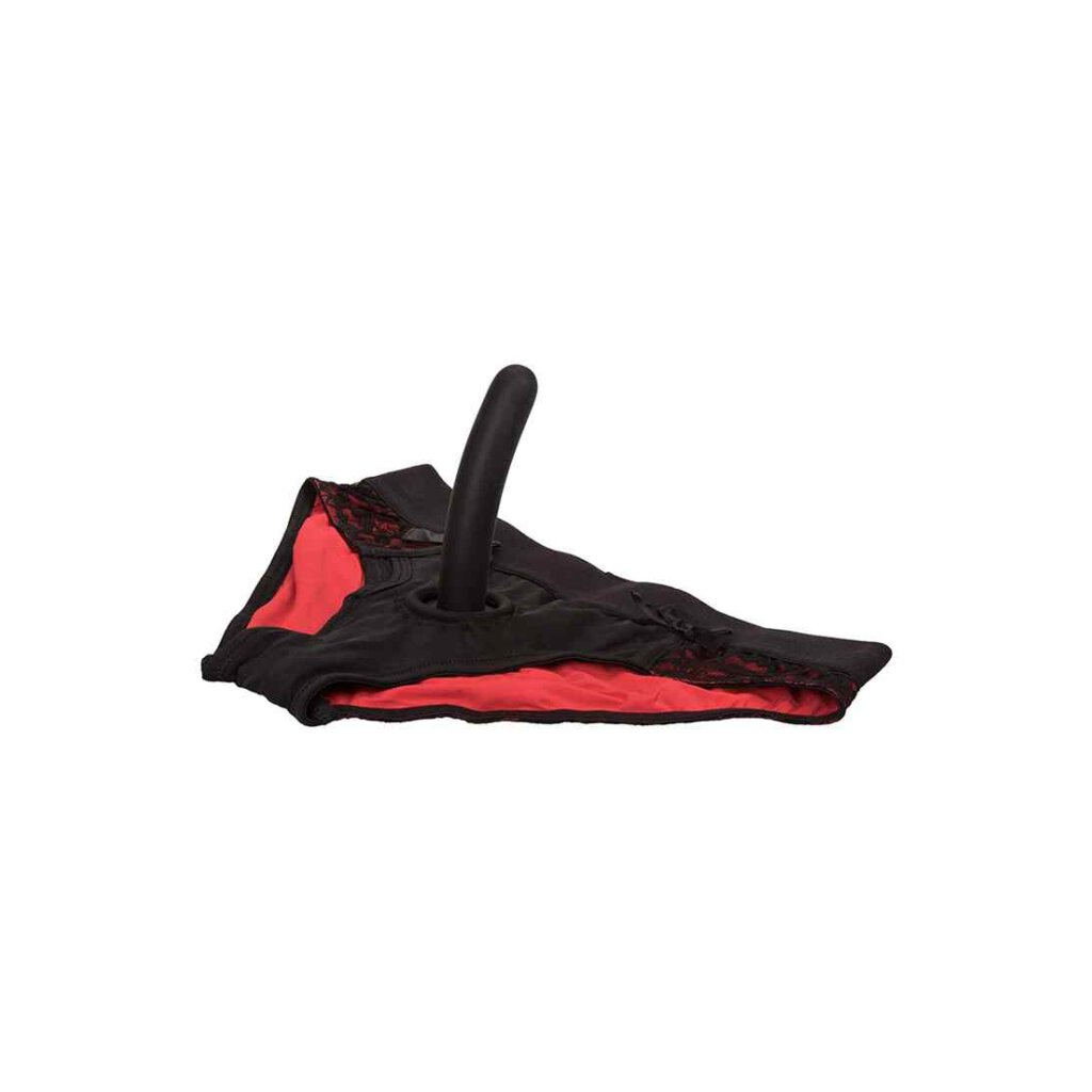 Buckle up for the sensationally enhanced ride of your life with the CalExotics Scandal Pegging Panty Set! The luxurious sexy bondage panty combines exciting thrusting pleasure with an edgy feminine design for any role reversal lover. Each bondage sex toy set comes with a sensationally sexy open back panty strap and a 12.7 cm ergonomically curved silicone analtoy. Never fumble with complicated and uncomfortable straps again, slip into the ultra-supportive, stretchy pegging panty designed for a complete and total bondage sex experience. Dominant men will be pleased when they slip into the chic panty with a soft, plush interior and a designer fabric exterior. While the extra-wide waistband moves and flexes with every thrust, the reinforced, stretchy O-ring keeps the chosen probe in place during even the most vigorous bondage and sex play. When playtime is over, these sinfully fun panties are 100% machine washable for your convenience. Indulge in your most erotic sexual fetish fantasies and dive deep into pleasure when you slip into the fashionable fetish panties. Available in size S/M.