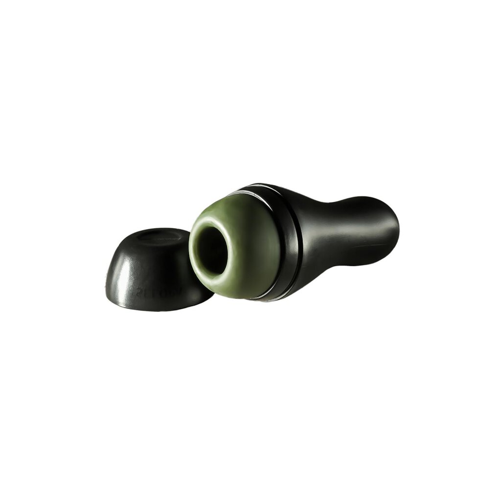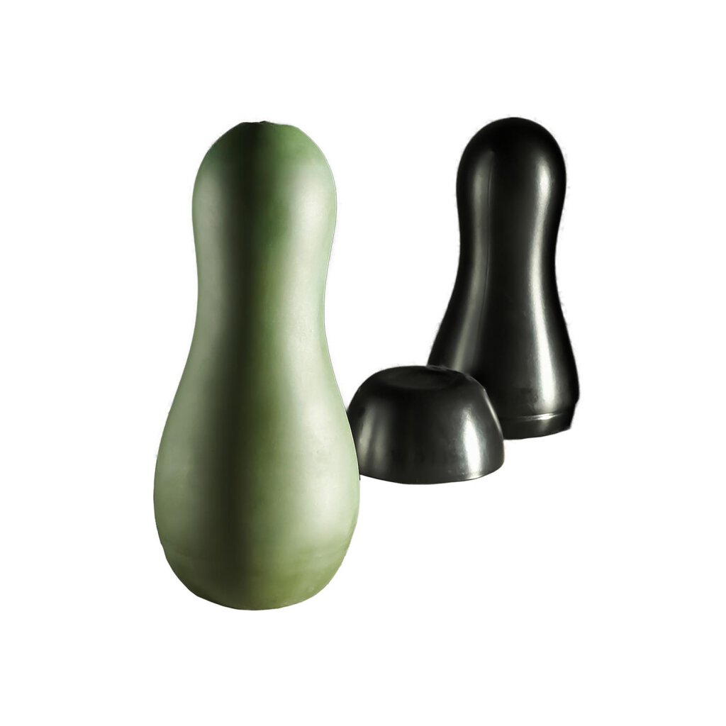 This simple bowling pin shape creates the perfect ergonomic shell around a soft and stretchy textured stroker channel finished with a removable cap.