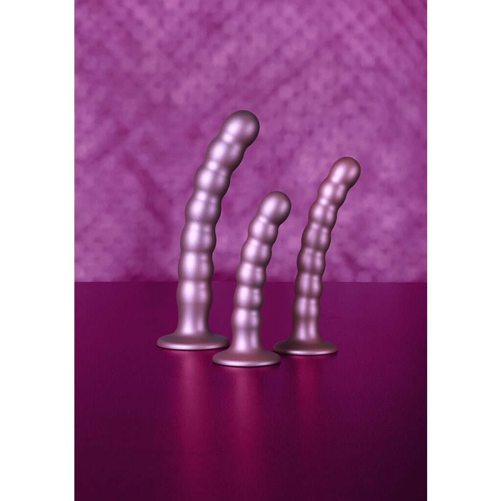 Der 5" / 13 cm Smooth G-Punkt- Silikon- -Dildo, mit seinem starken Saugnapf und der schönen Metallic-Farbe ist eine Klasse für sich. Egal ob du alleine, mit deinem Partner oder sogar mit einem Strap-On unterwegs bist, entdecke mit diesem wunderschönen Produkt neue Spaß! Dildos aus hochwertigem Silikon und Flüssigsilikon. Passt perfekt zu den "Ouch Strap-on-Höschen".