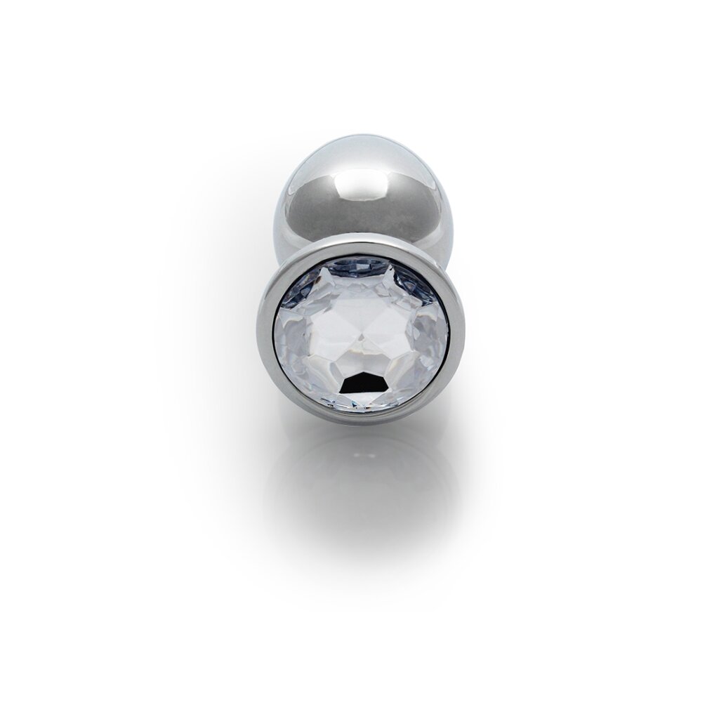 Mit seiner glatten Metalloberfläche und der mit Edelsteinen besetzten Basis ist dieser Butt Plug ein echtes Schmuckstück.