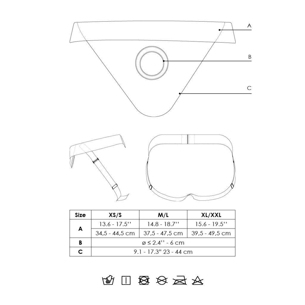 Grâce au système unique de joints toriques, presque tous les godemichés et dongs s'adaptent à ce strap-on-slip, sans avoir besoin de joints toriques supplémentaires.