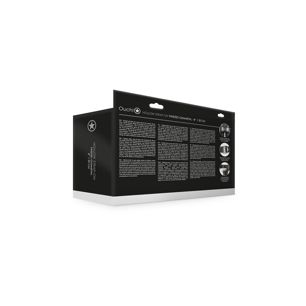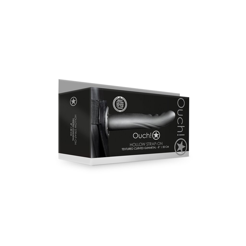 Shots Ouch! Strukturierter gebogener hohler Strap-On grau 20 cm