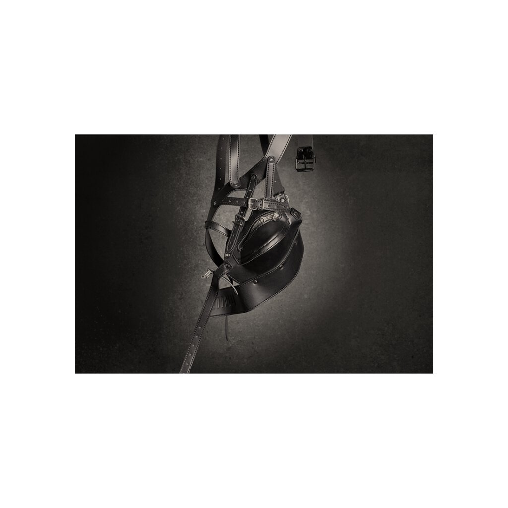 Avec ce harnais de tête en cuir, tu peux fermer la bouche de ton sub.