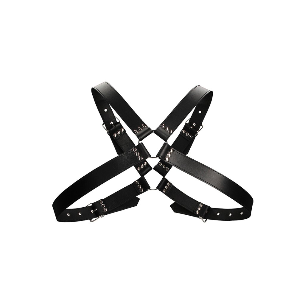 Put this studded chest harness on your male partner and enjoy new possibilities for bondage play.