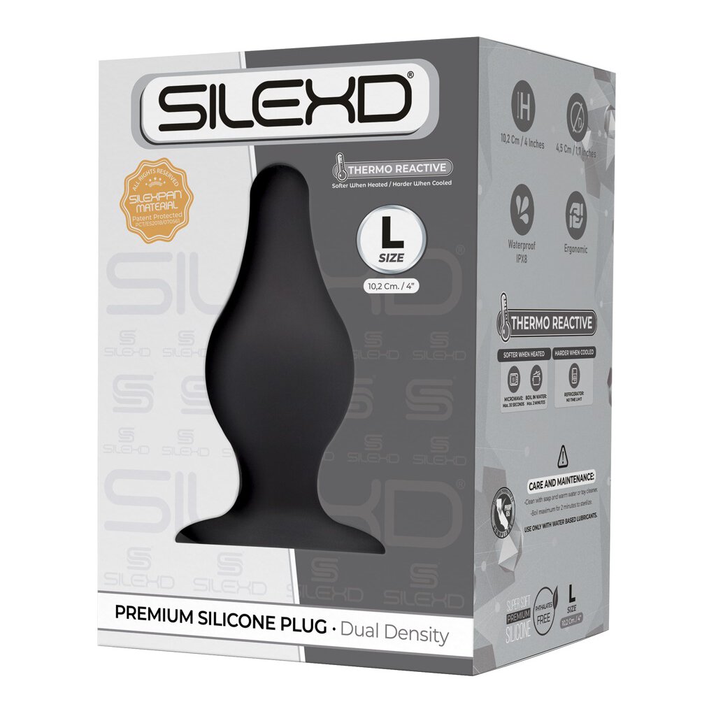 This Premium Silicone Plug Model 2 L from SilexD with lightly sucking stopper adapts individually to the wearer. At high temperatures it becomes soft and can be deformed. This can be achieved by using a microwave (max. 30 seconds) or hot water (max. 2 minutes). In the refrigerator, on the other hand, the plug becomes hard. Perfectly suited for temperature and material play.