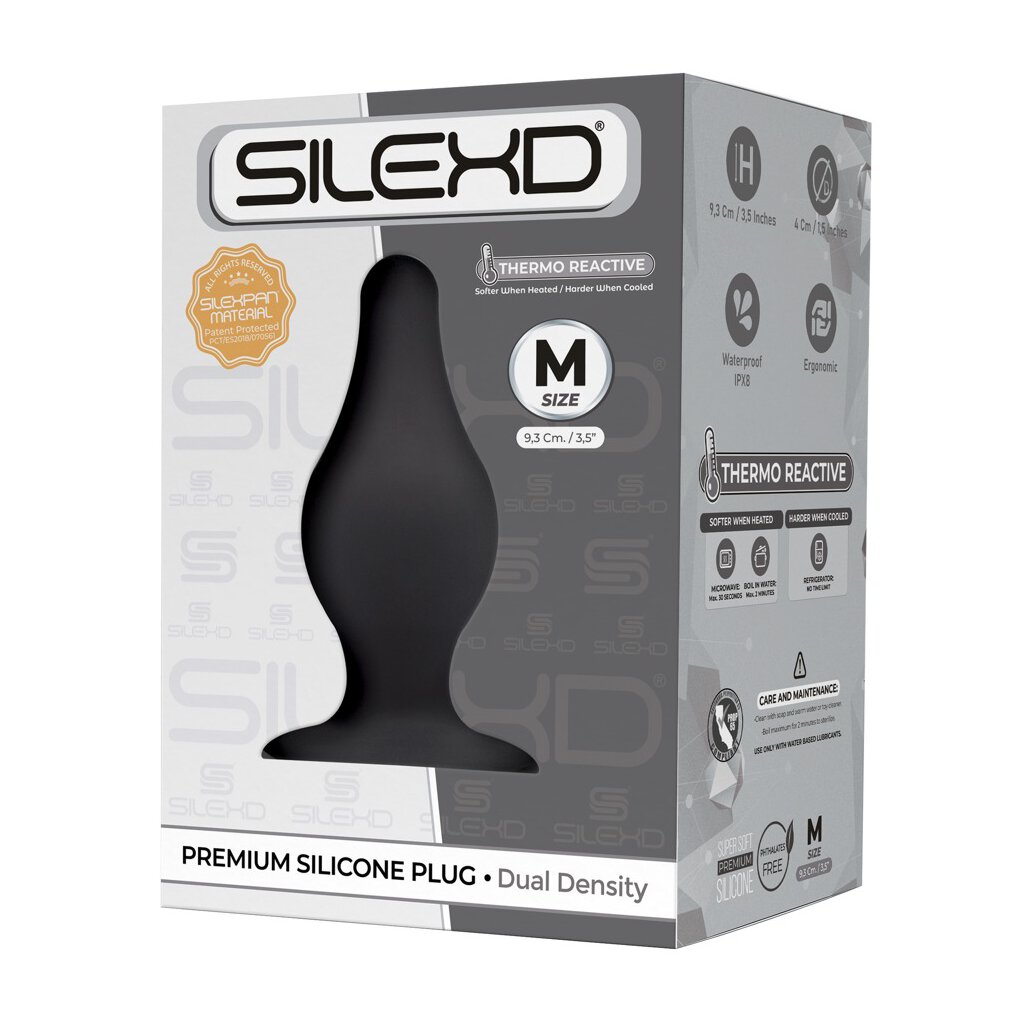 This Premium Silicone Plug Model 2 M from SilexD with lightly sucking stopper-stand adapts individually to the wearer. At high temperatures it becomes soft and can be deformed. This can be achieved by using a microwave (max. 30 seconds) or hot water (max. 2 minutes). In the refrigerator, on the other hand, the plug becomes hard. Perfectly suited for temperature and material play.